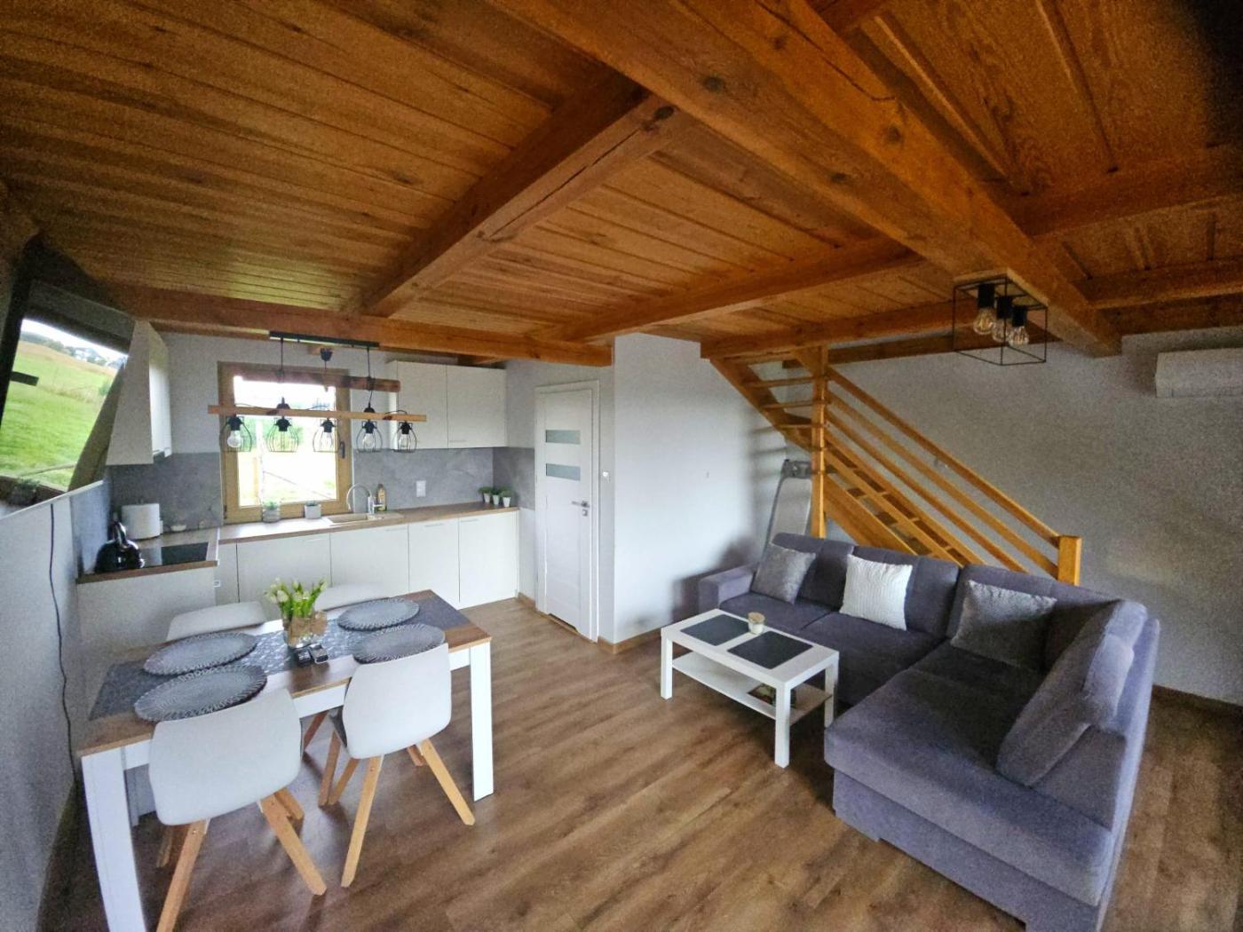 Dom z 2 sypialniami. The holiday homes kitchen is available for cooking and storing food. Boasting a terrace with garden views, this holiday home also features air conditioning and a flat-screen TV. The unit has 5 beds. Dom wakacyjny - 8 osobowy. Powierzchnia pokoju ok.: 70 mkw.