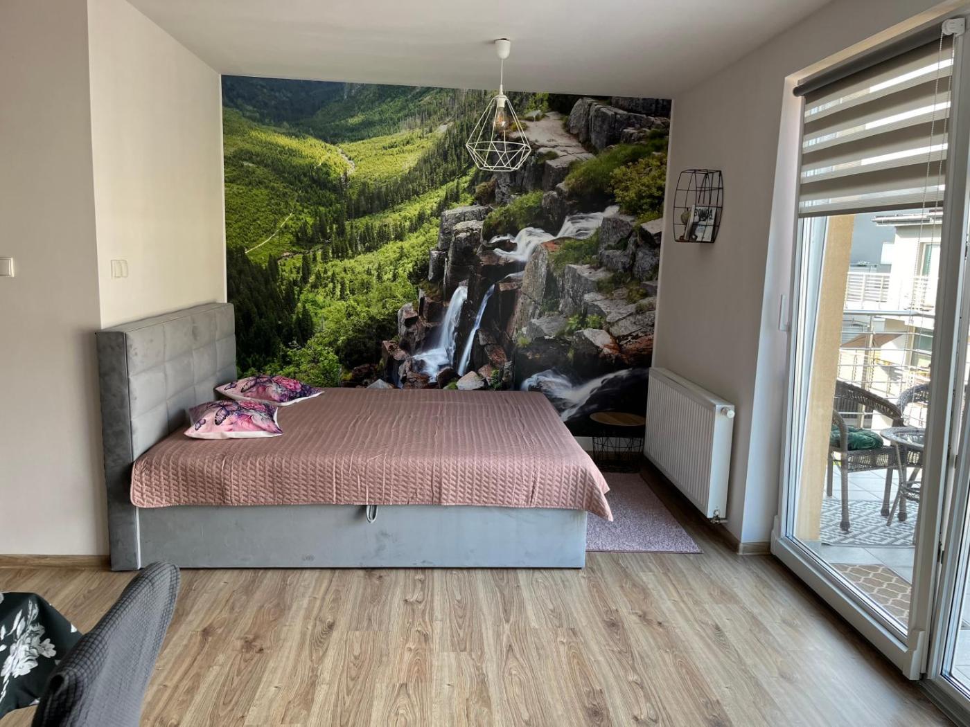 Apartament z 1 sypialnią. The apartment features 1 bedroom and 1 bathroom with a shower and free toiletries. The well-fitted kitchenette has a stovetop, a refrigerator, a dishwasher and kitchenware. Featuring a balcony with garden views, this apartment also offers a washing machine and a flat-screen TV with satellite channels. The unit offers 1 bed. Apartament - 2 osobowy. Powierzchnia pokoju ok.: 30 mkw.