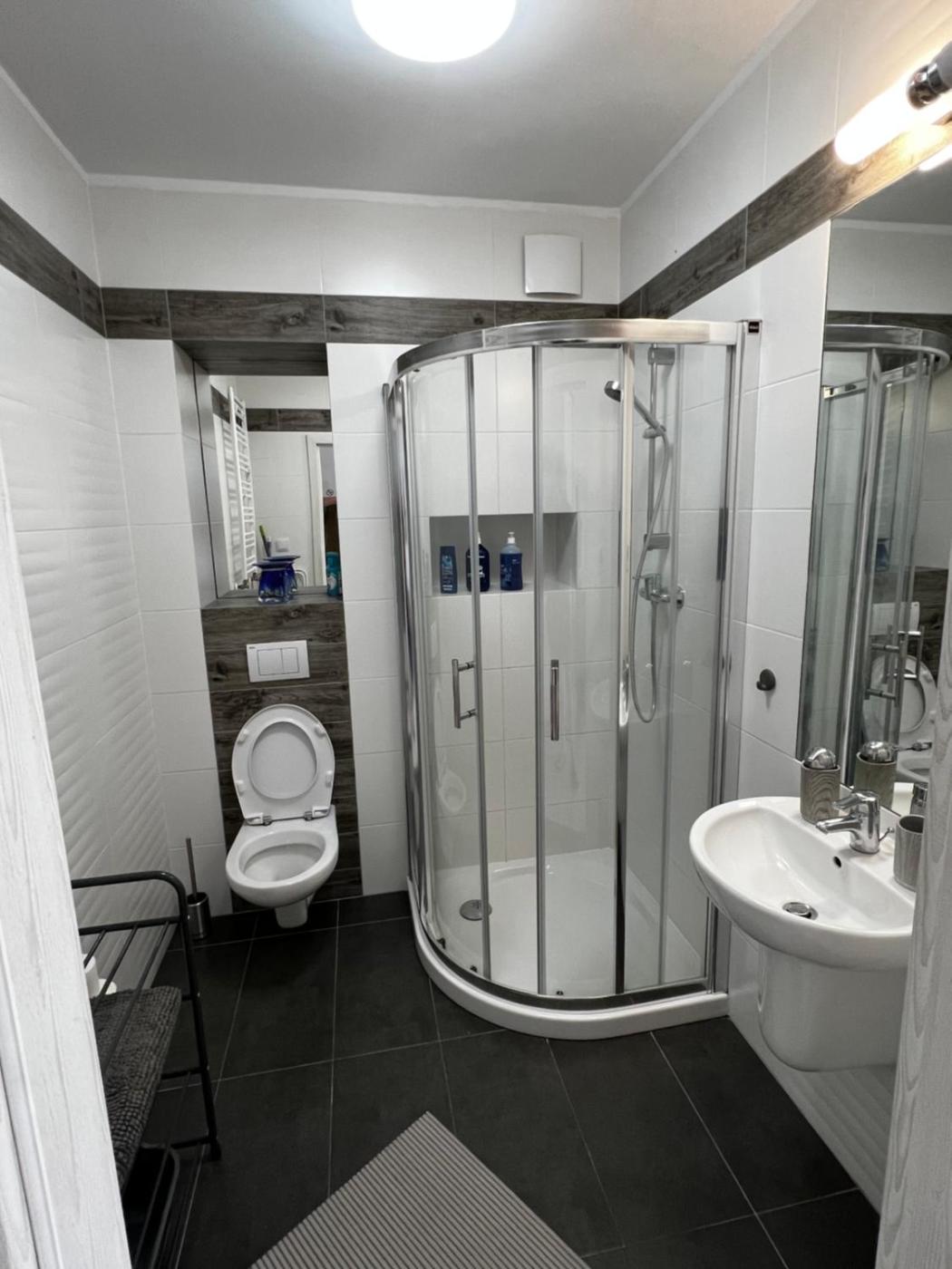 Apartament typu studio. Featuring a private entrance, this apartment consists of a kitchen, 1 bedroom and 1 bathroom with a walk-in shower and a hairdryer. The well-equipped kitchen features a stovetop, a refrigerator, kitchenware and a microwave. Boasting a terrace with city views, this apartment also provides a tea and coffee maker and a flat-screen TV with cable channels. The unit offers 1 bed. Apartament - 3 osobowy. Powierzchnia pokoju ok.: 29 mkw.